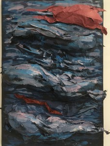 2020Water kan stilstaan en water kan tot grote hoogte reiken. Woeste golven sleuren alles mee Mixed media. 68,5 x 98,5 x 14 cm, met uitsteeksels