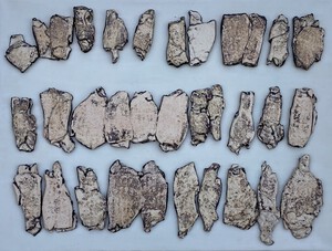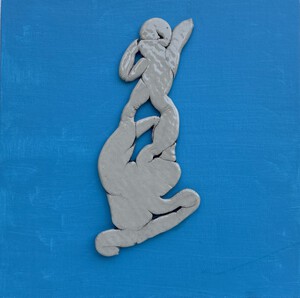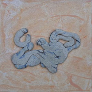 Het dagelijks leven stroomt over met activiteiten, gedachten, meningen, verplichtingen, idealen. Van tijd tot tijd zit je helemaal vast, klem en komt er niets uit je handen. Dit verplettering onder alles wat moet, wat kan, wat je wilt probeer ik zo weer te geven. Klei is een mooi medium hiervoor, je kunt het stampen, verkleven, rollen. kortom, afreageren. De vormen kwamen tot stand door smijten en walsen. De afwerking kwam tot stand in een afgekoeld stadium, met meer berekening.